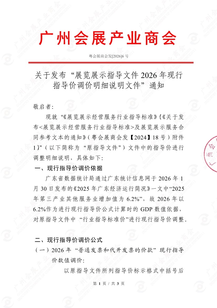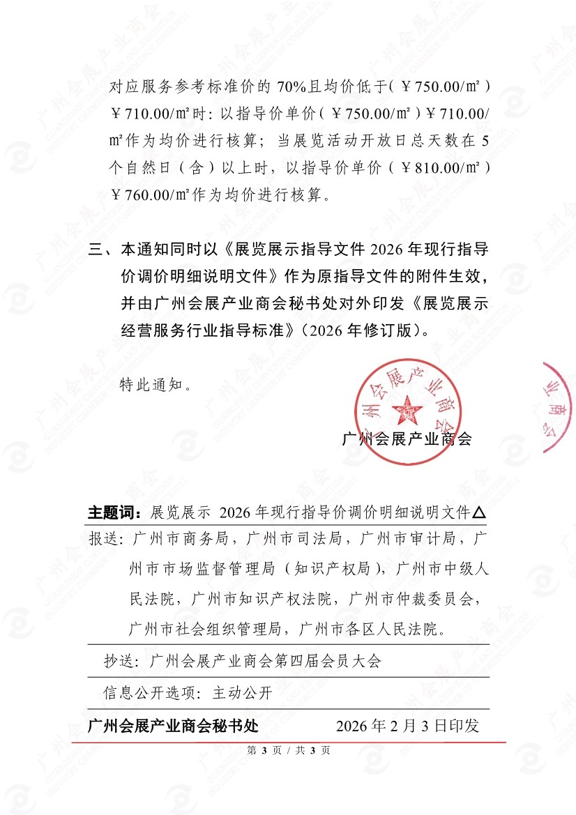 关于发布“展览展示指导文件2026年现行指导价调价明细说明文件”通知(粤会展商会发[2026]6号)